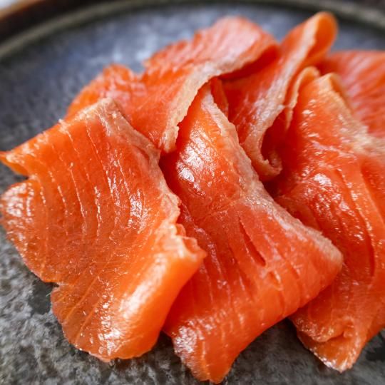 ■原材料:紅鮭(ロシア産またはアメリカ産)、食塩、砂糖、香辛料/酸化防止剤(V.C)
